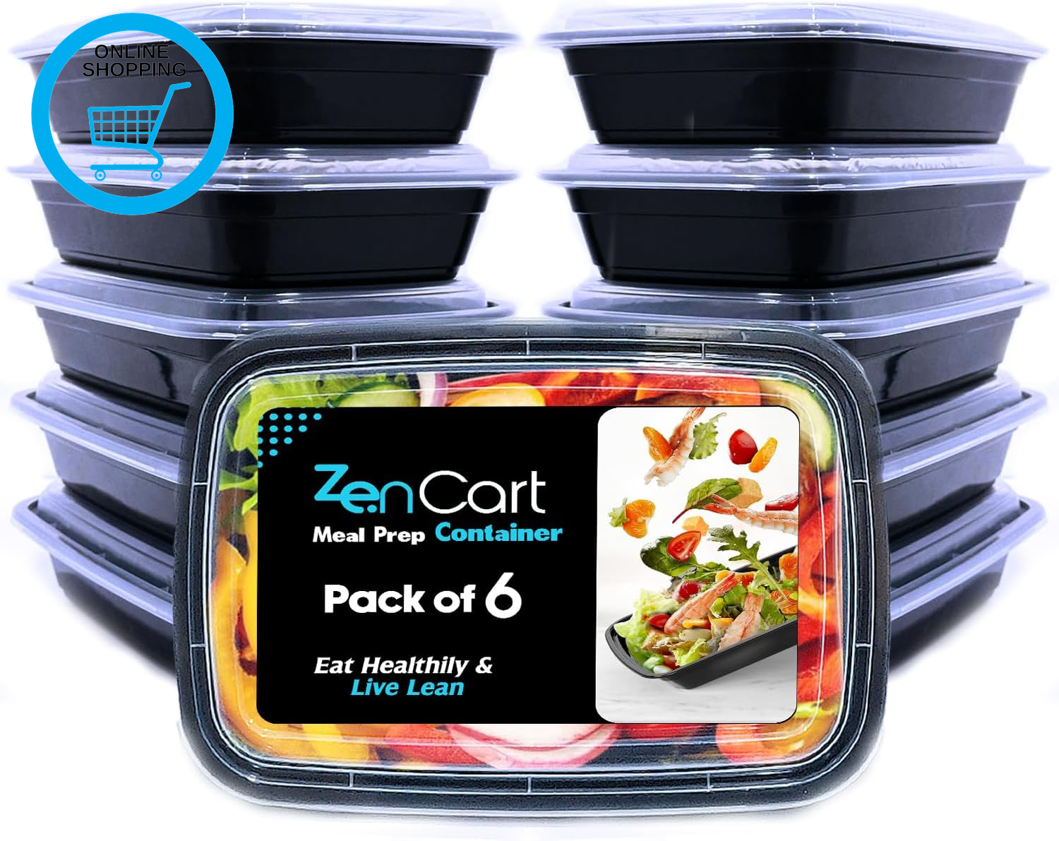Zencart 6 Pack Meal Prep Containers Reusable, BPA Free Food Prep Containers with Lids for Freezer Storage- Microwavable, Freezable & Dishwashers Safe