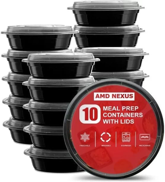 10 Meal Prep Food Containers BPA FREE Plastic Lunch Box Lids