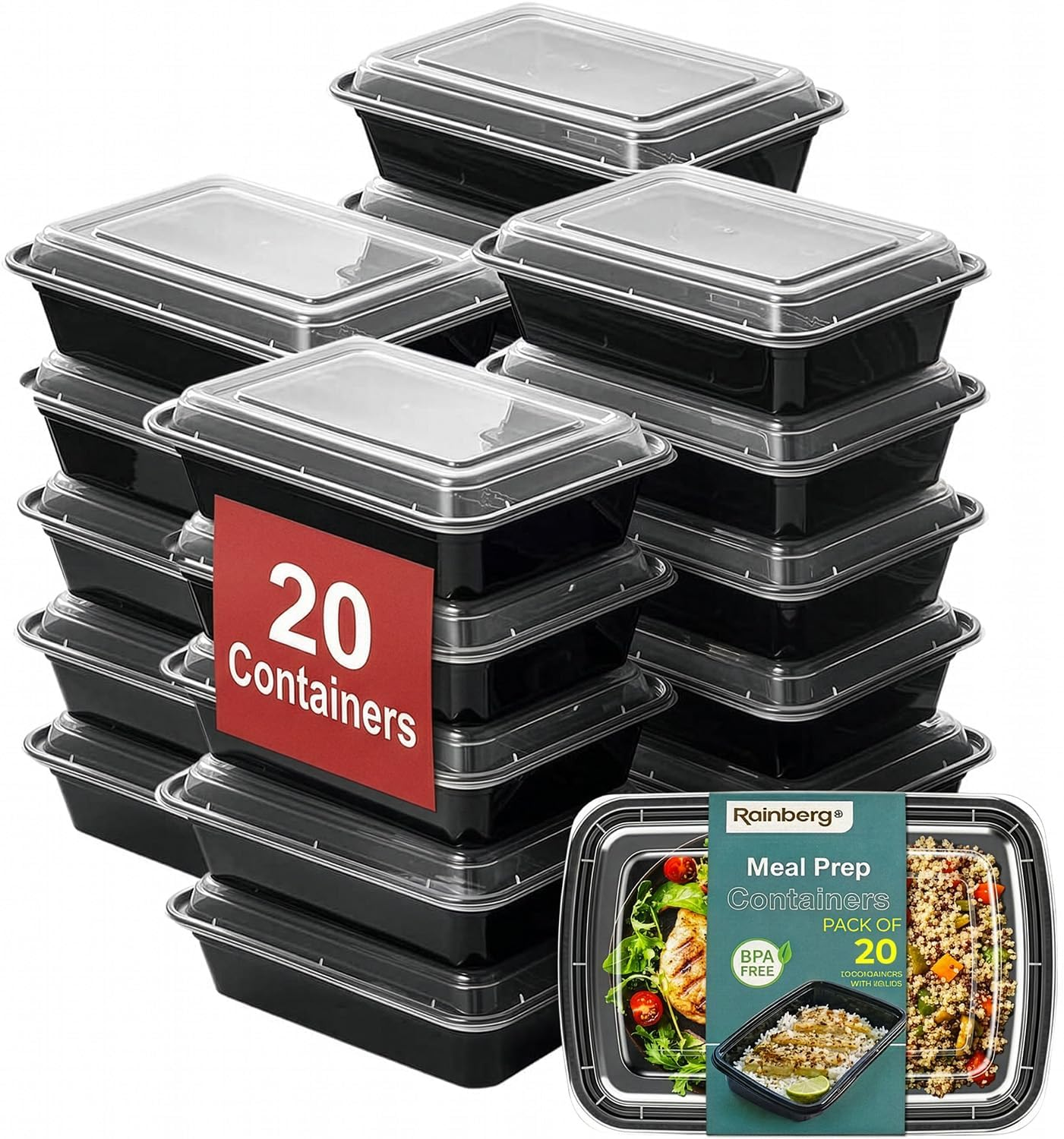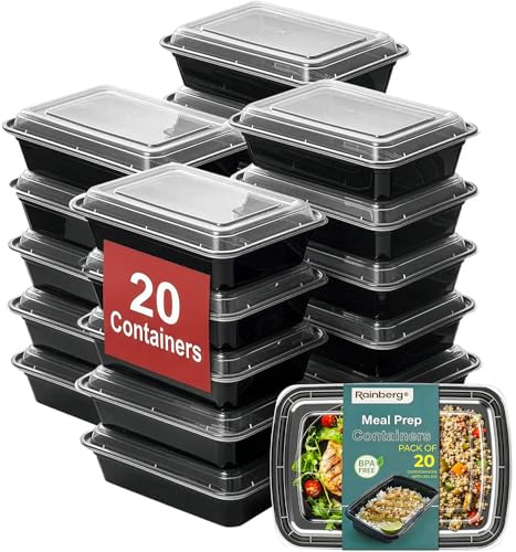 Rainberg Meal Prep Containers 1 Compartment, BPA Free Reusable Food Prep Containers with Lids - Microwave, Freezers & Dishwashers Safe - Stackable Storage Lunch Boxes (20)