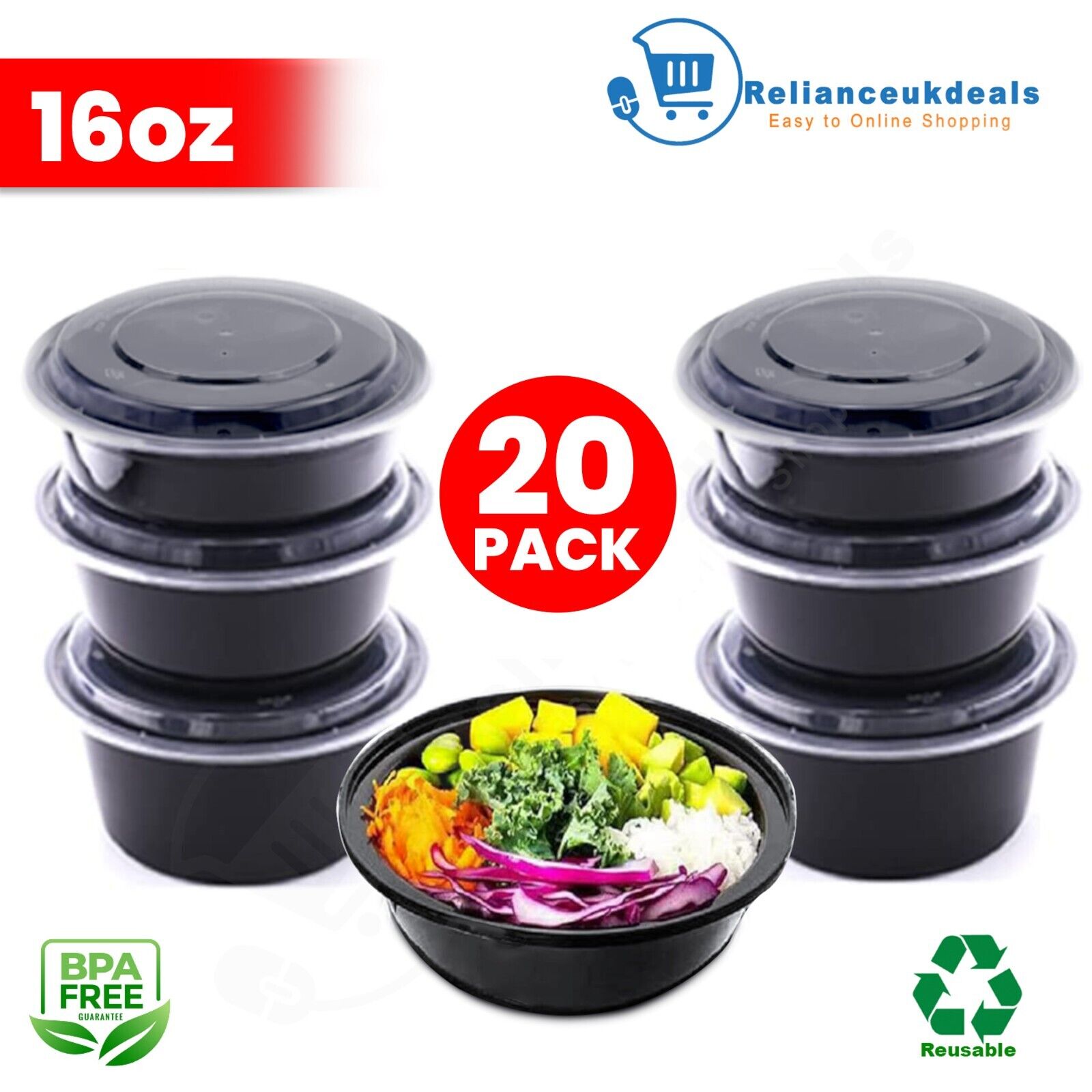 20 x 16oz Round Meal Prep Food Containers Reusable BPA Free Food Containers