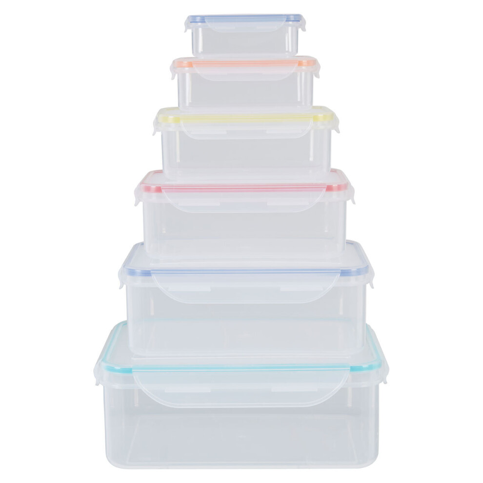 Premier Housewares Set of 6 Rectangular Food Containers | Multicolor Food Boxes with Airtight Lids | Food Prep Storage Containers for Snacks, Food, Dry Ingredients