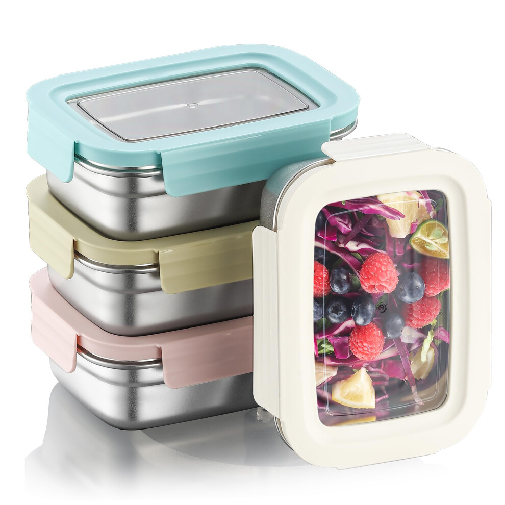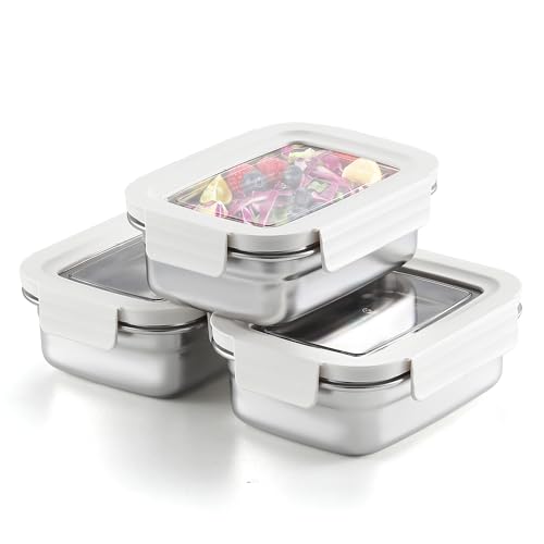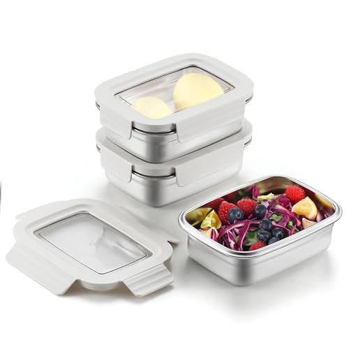Misichao Small Stainless Steel Food Storage Containers with Lids - Stackable Meal Prep Food Containers for Kitchen & Pantry, Leakproof, Reusable Metal Bento Lunch Box (White, 650 ml)