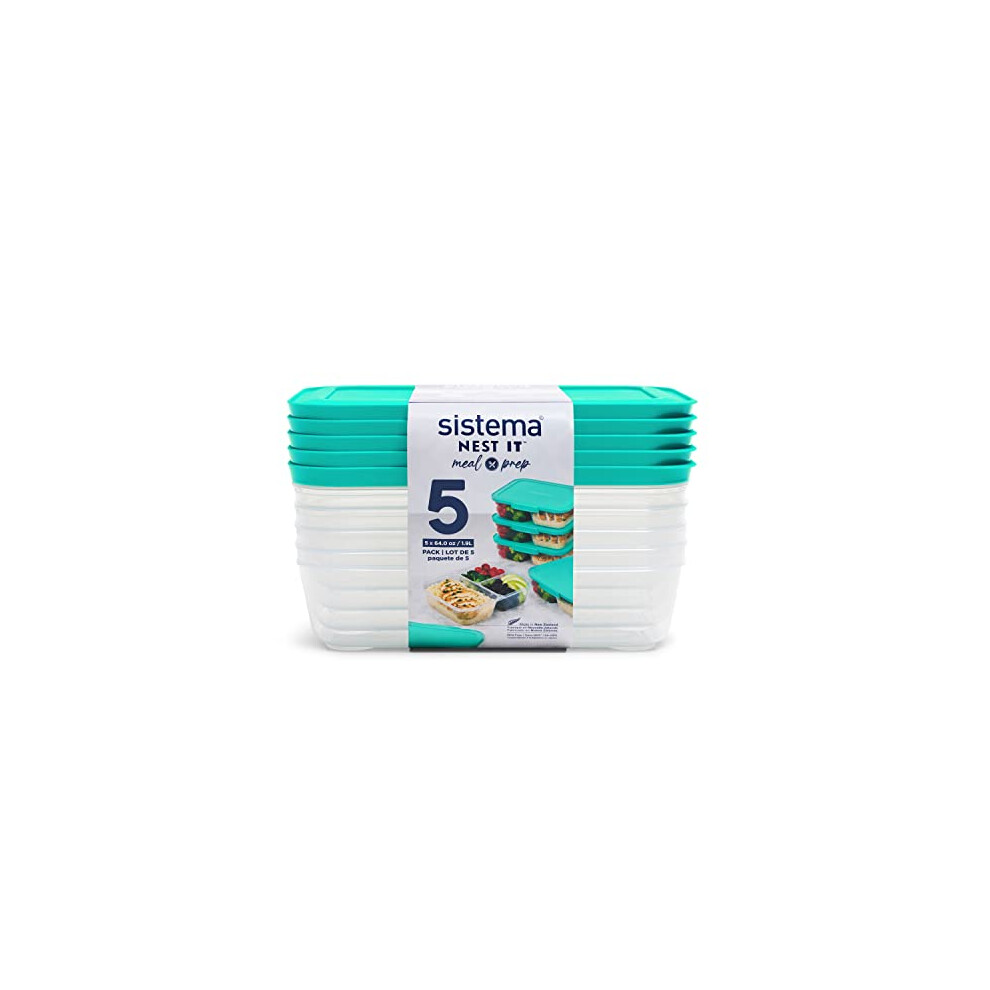 Sistema Nest It Meal Prep Food Storage containers with Lids, 3 compartments, 8 cups, 5-Pack, Teal