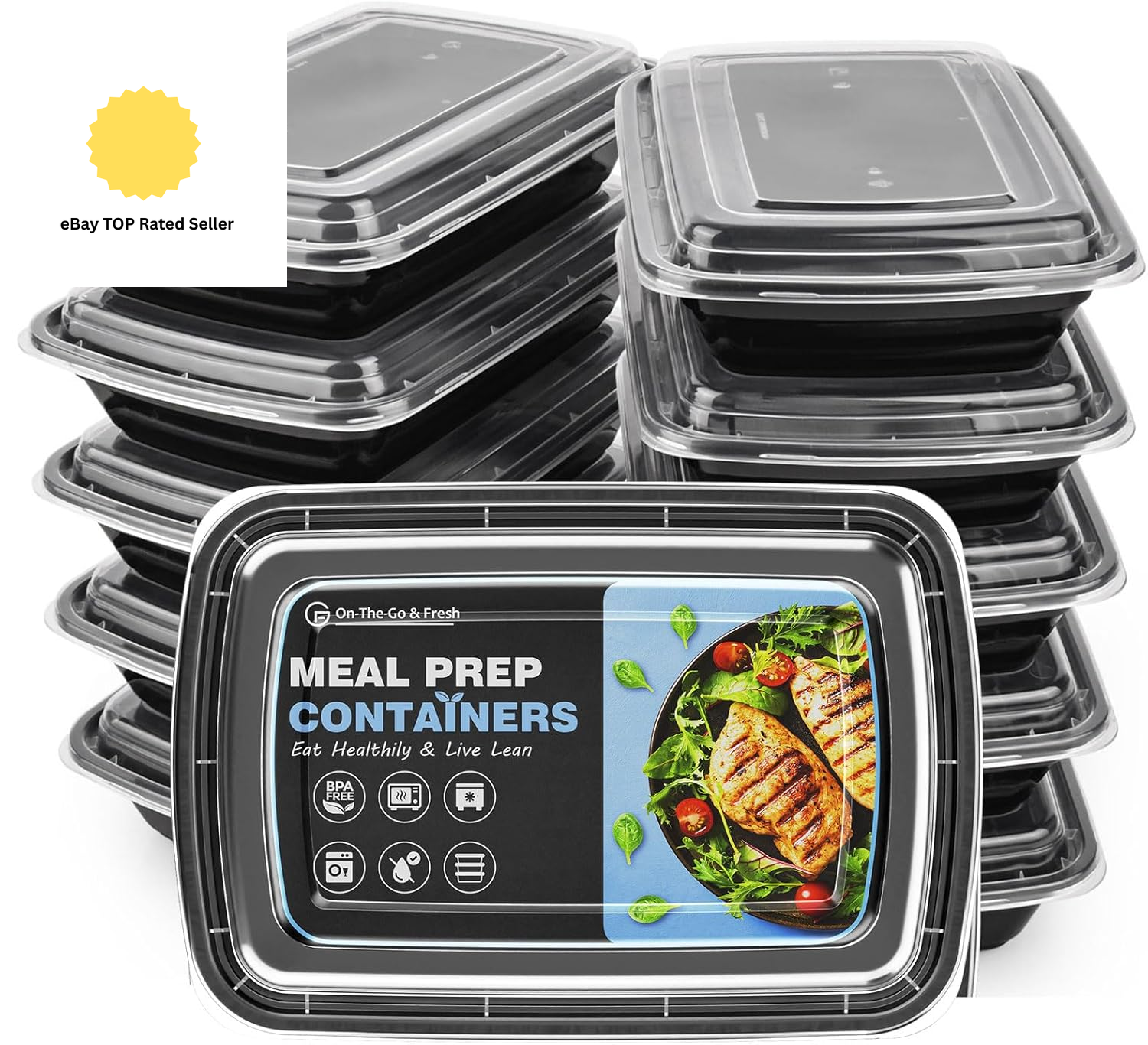 Fenton Packaging 15 X Meal Prep Food Storage Containers with Lids, Single Compartment, Microwavable, Reusable, Dishwasher Safe, Freezer Safe, BPA-Free, Recyclable Leakproof, Stackable