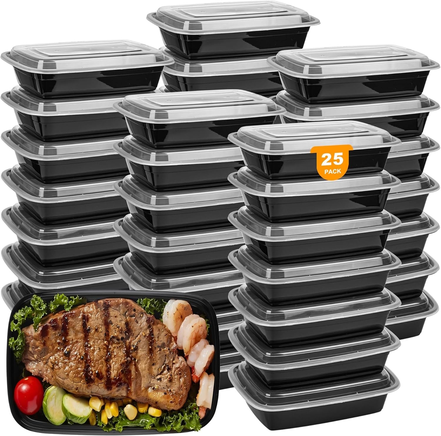 25PCS Meal Prep Containers, 1 Compartment Food Prep Containers, Food5403