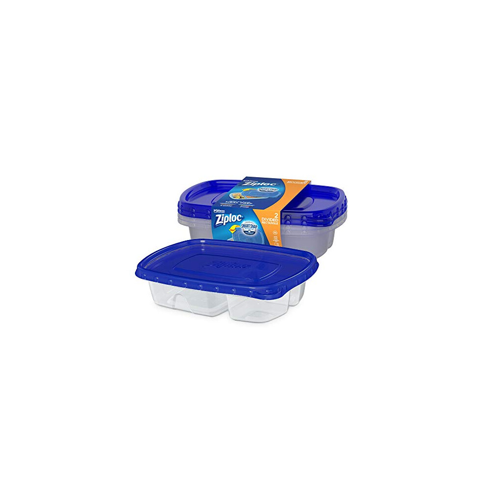 Ziploc Food Storage Meal Prep Containers Reusable for Kitchen Organization, Smart Snap Technology, Dishwasher Safe, Divided Rectangle, 2 Count