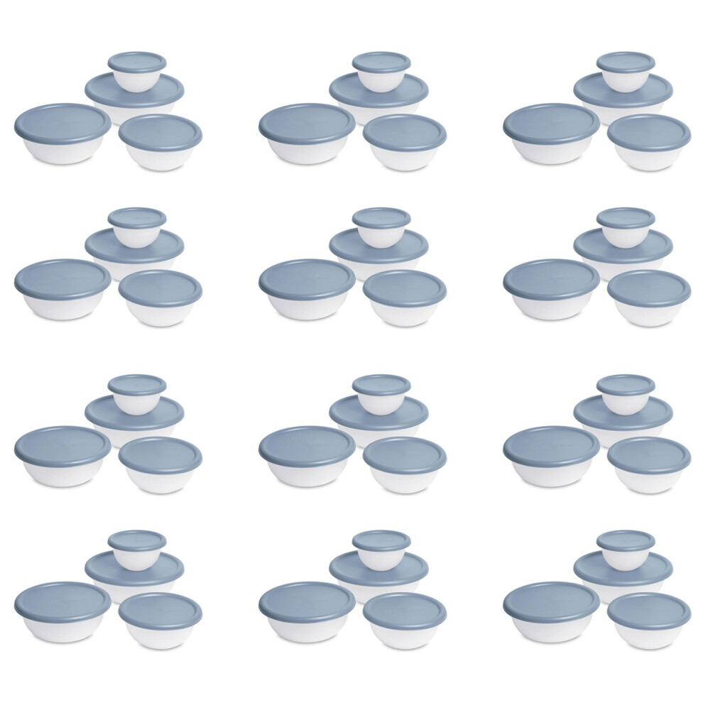 Sterilite Covered Bowl Set Plastic Nesting Kitchen Mixing Bowls with Pour Spout Meal Prep Food Storage Containers with Lids Washed Blue (Set of 12)
