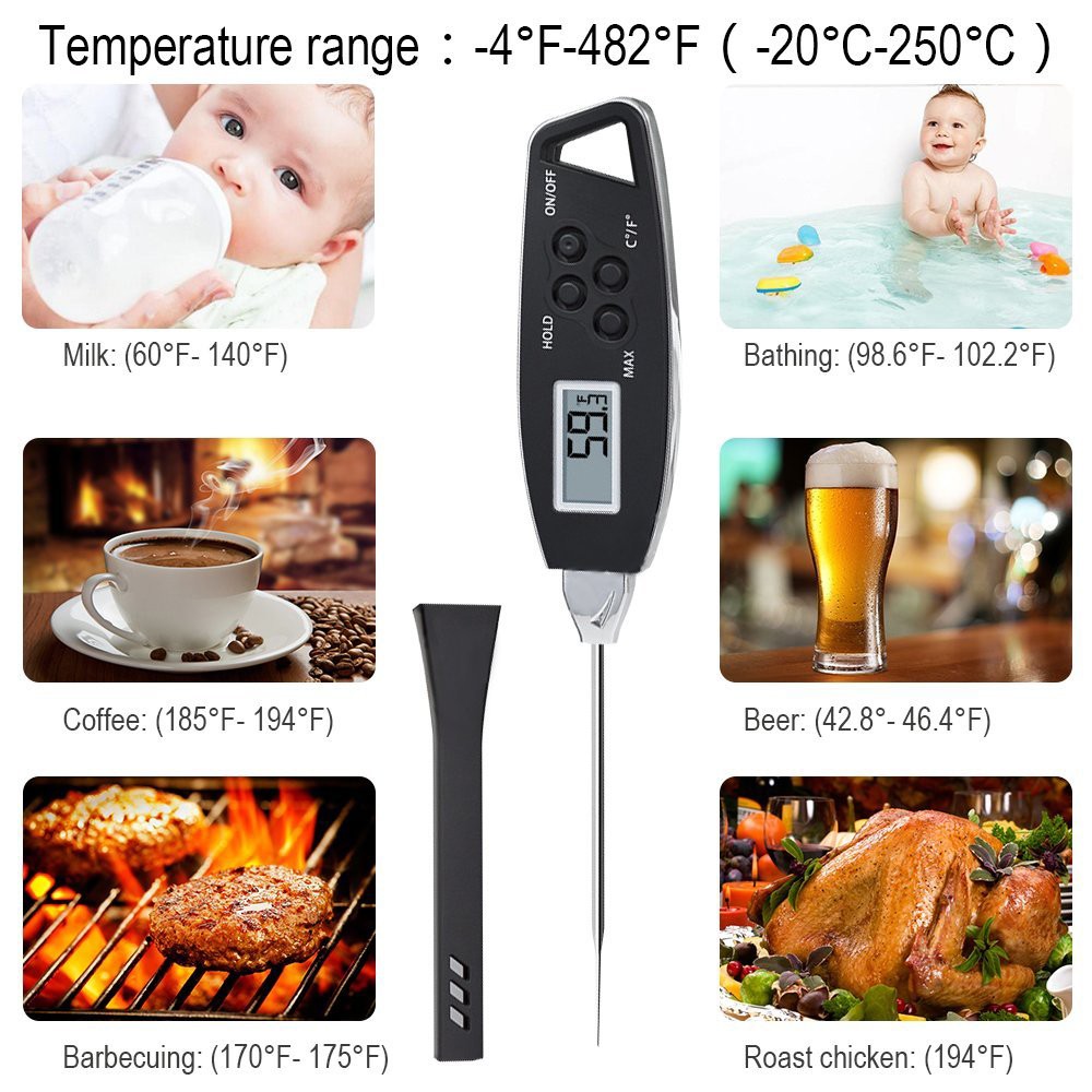 _Digital Thermometer With Foldable Probe Food Temperature Meter High Accuracy
