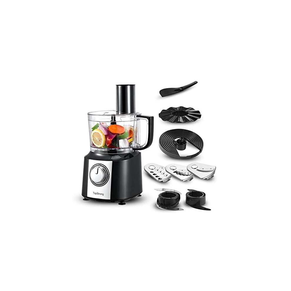 TopStrong Food Processor, 6-in-1 Food Processor and Blender Multifunctional for Chopping, Slicing, Shredding and Kneading Dough, 3 Speeds with Pulse,
