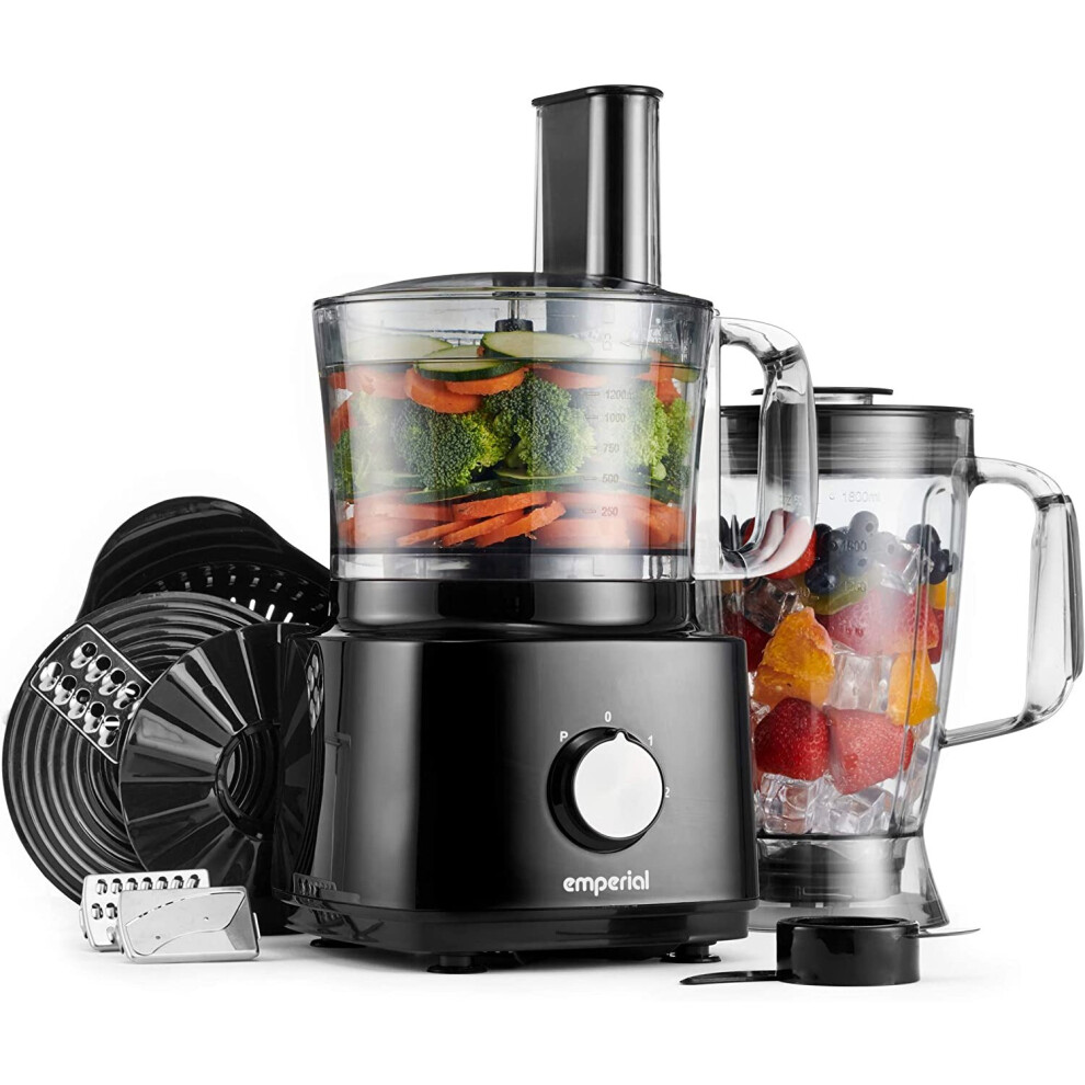 Emperial Food Processor and Blender – 2L Bowl, 1.8L Jug, Multifunctional 8in1 Citrus Juicer, Shredder, Slicer, Emulsifier & Grater – Features 2 Speeds + Pulse Control