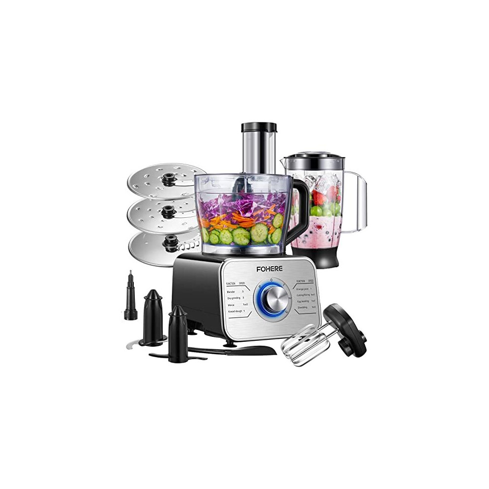 FOHERE Food Processor Multifunctional, 3-Speed Food Processor and Blender Combo with 3.5 L Bowl, 1.5 L Blender Jug, Simple Operation for Blending, Dicing, Slicing, Shredding, Mincing, and Pureeing