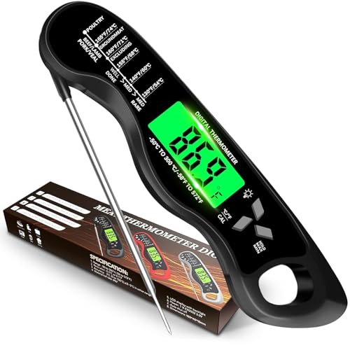 Instant Read Meat Thermometer Digital - Waterproof Food Thermometer with Backlight for Cooking, Grill, Candy, Kitchen & Stocking Stuffers for Men - Black