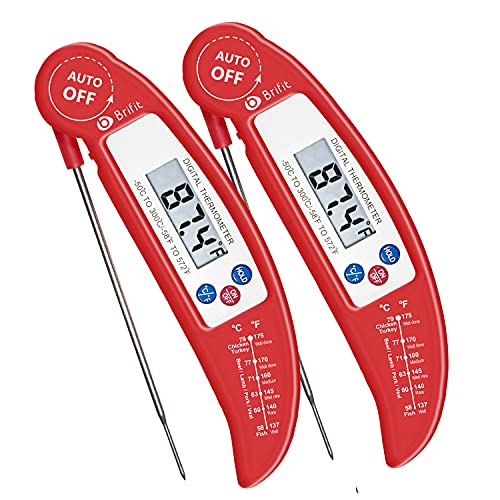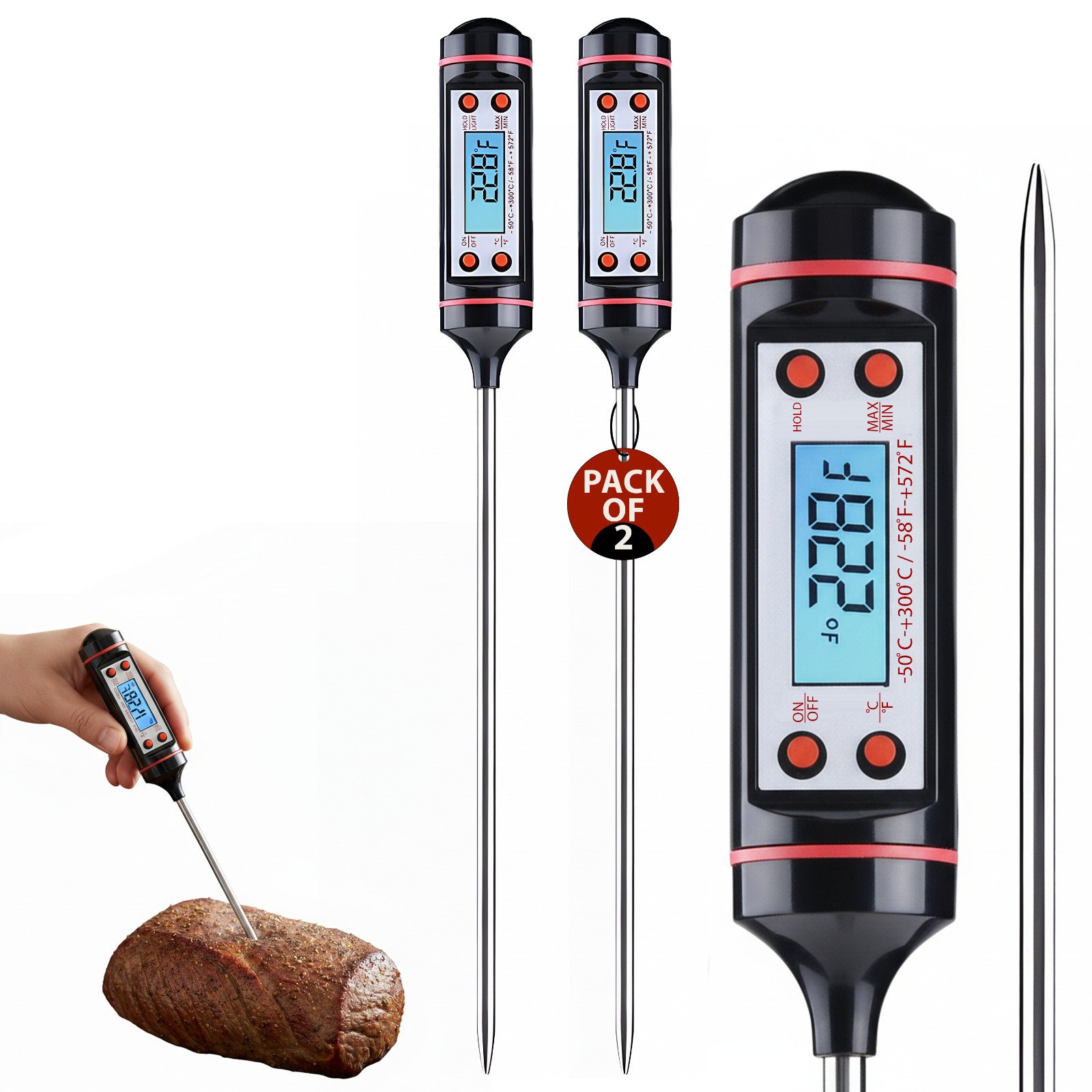 BOMATA 2 Pack Waterproof IPX7 Meat Thermometer Instant Read Food Thermometer with Long Probe for Water, Liquid, Kitchen Cooking, Grill,BBQ ! T101 X 2 Pcs (Black & Red)…