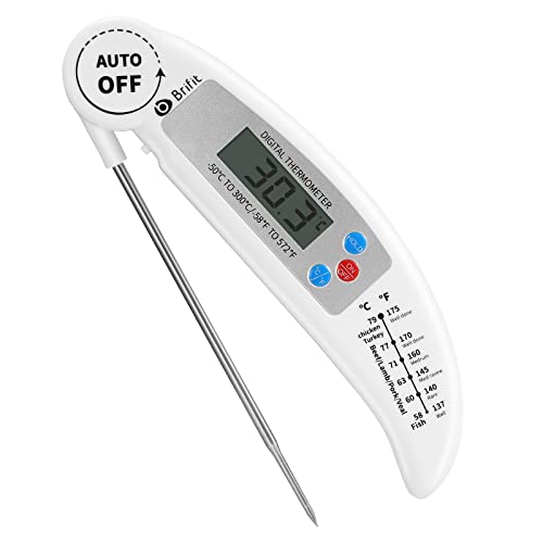 flintronic Food Thermometer, Digital Instant Read Meat Thermometer, High Accuracy Foldable Long Probe Food Cooking Thermometer with °F/°C, Auto On/Off Cooking Thermometer for Kitchen, BBQ, Milk, White