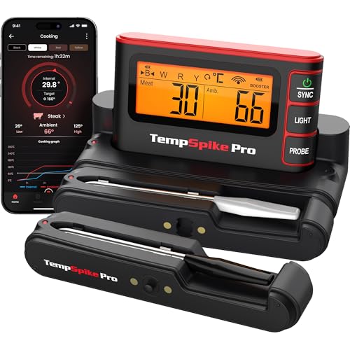 ThermoPro TempSpike Bluetooth Wireless Meat Thermometer Digital, WiFi Unlimited Range, Detachable Thiner Meat Probe & Standalone Base, 565℃ Heat Resistance, Food Thermometer for Cooking Grill Smoker