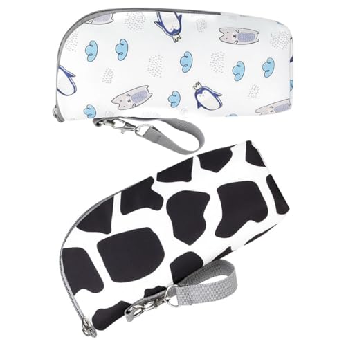 HAMPPLIES 2pcs Insulated Bottle Bags Portable Food Bottle Warmers with Handle for Travel and Stroller Attachment Machine Washable Thermal Carrier for Milk and Food Stylish Penguin and Stone