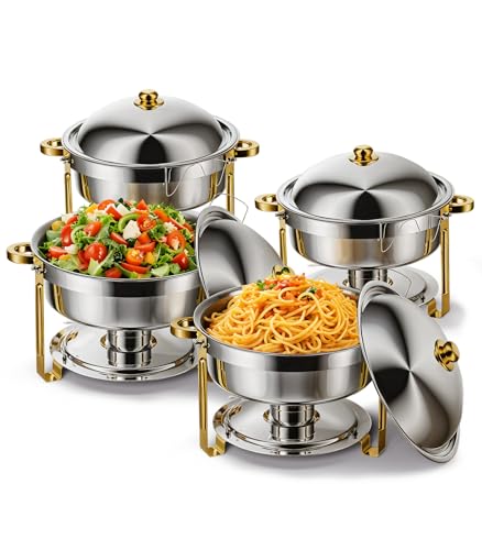 Wilprep Chafing Dish Buffet Set of 4, Round Stainless Steel Chafing Dishes and Food Warmers with Lids Food Pans & Fuel Holders, 5L Buffet Trays for