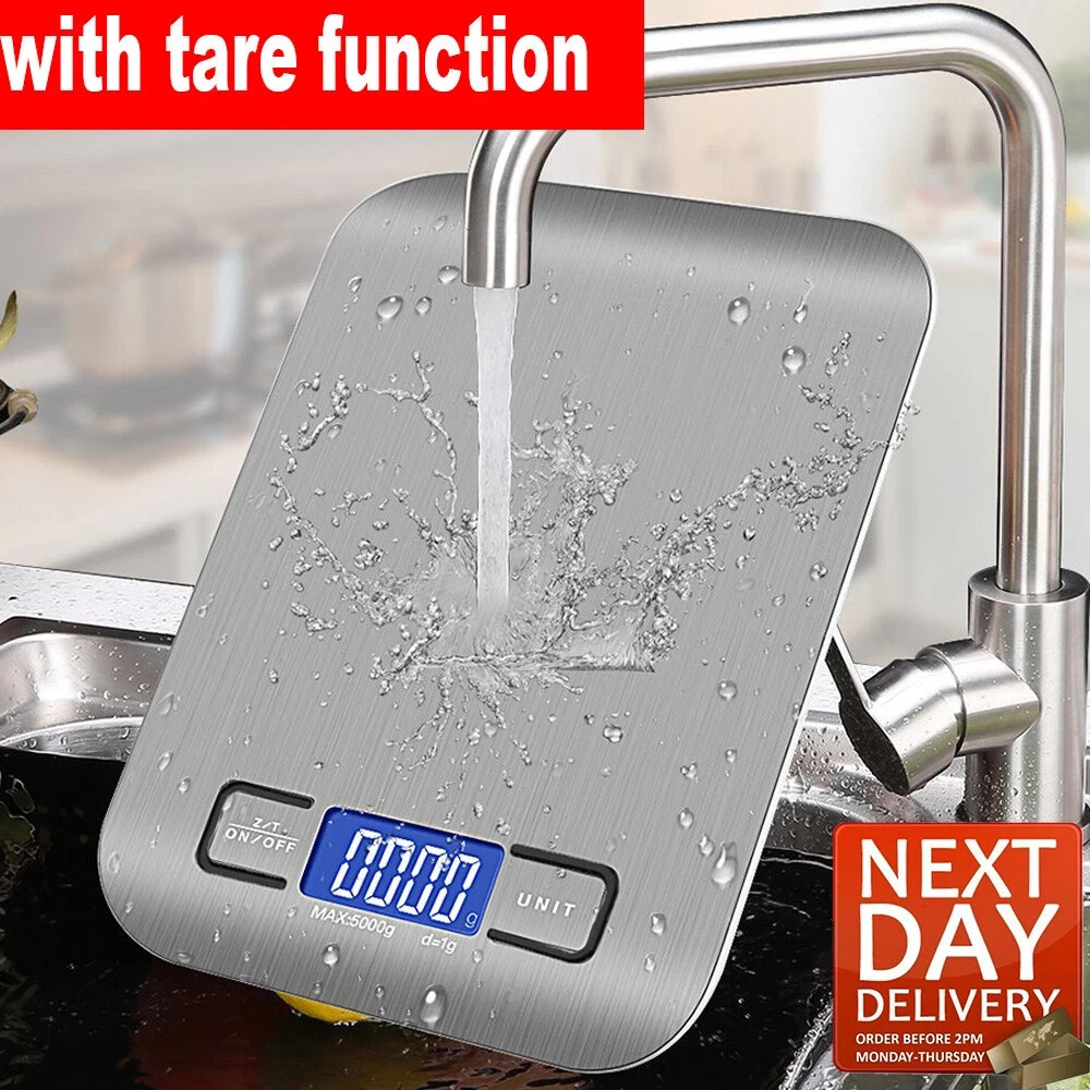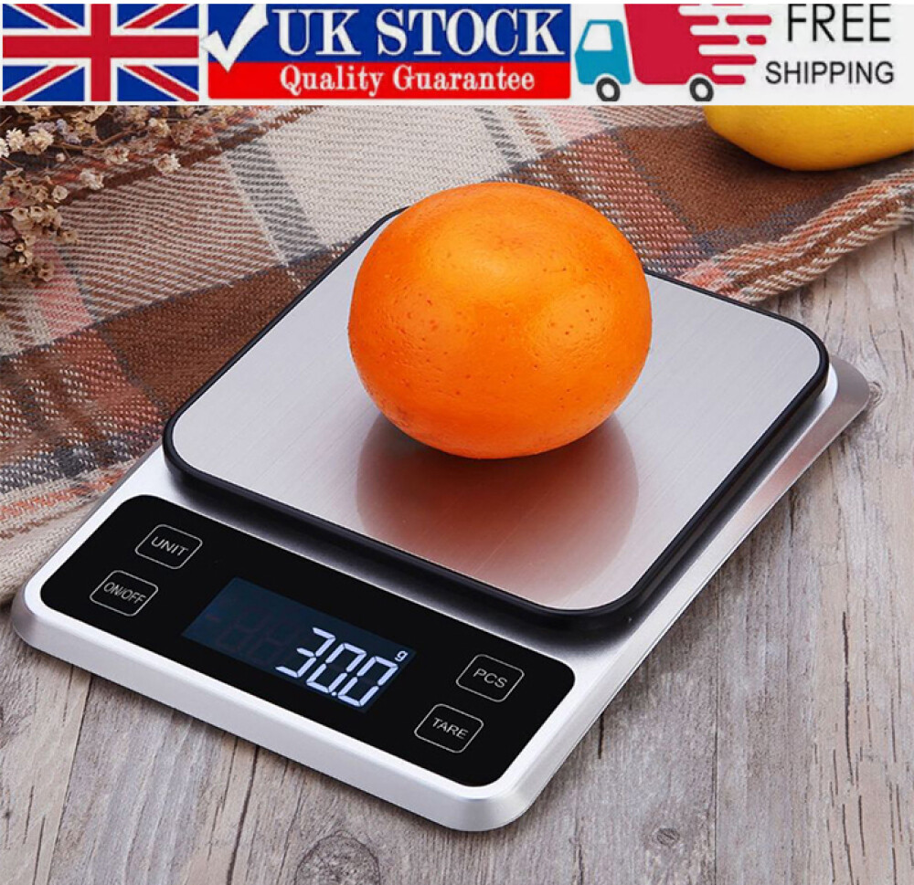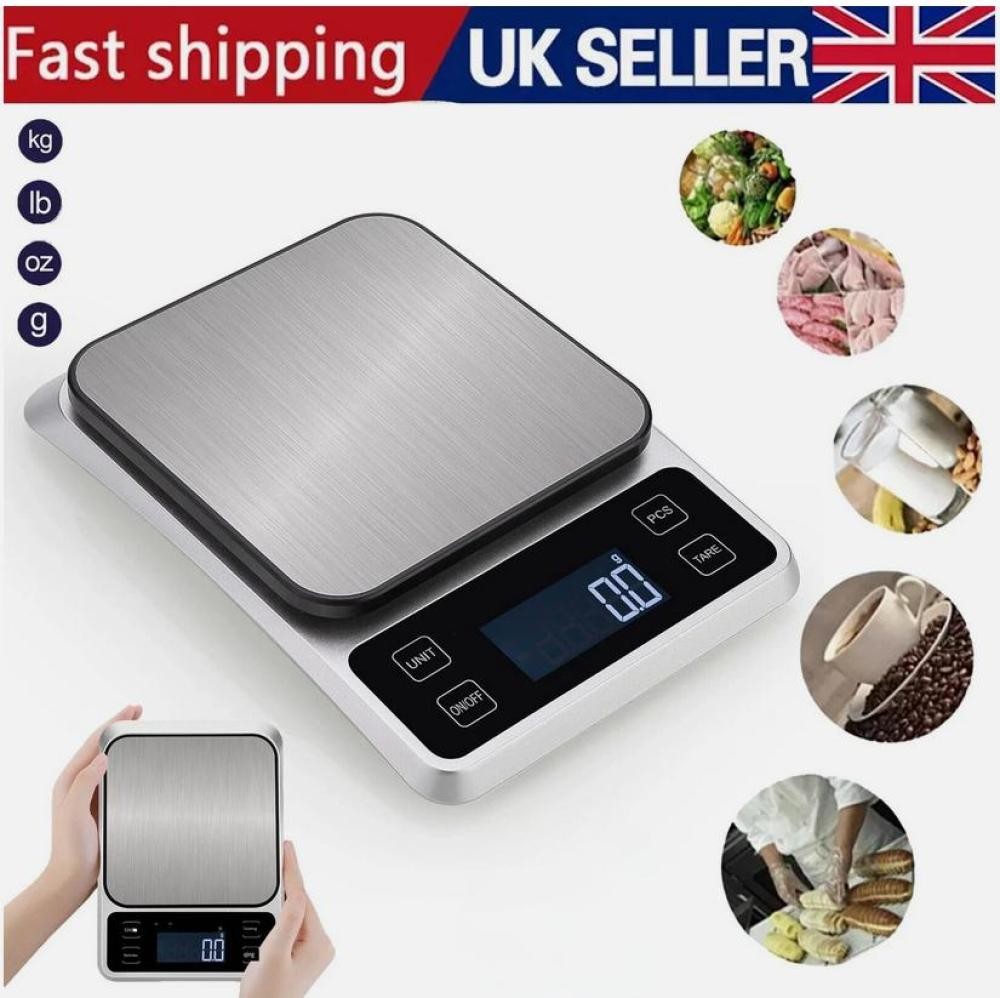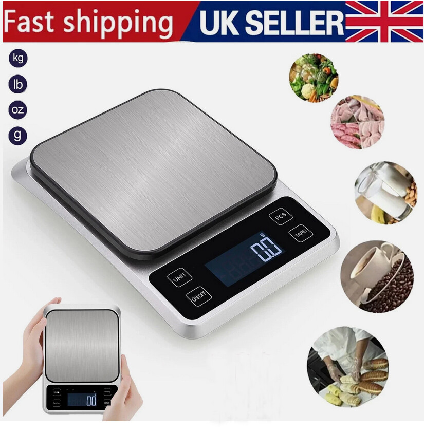 5KG Sliver Steel Digital LCD Electronic Kitchen Cooking Food Weighing Scales UK