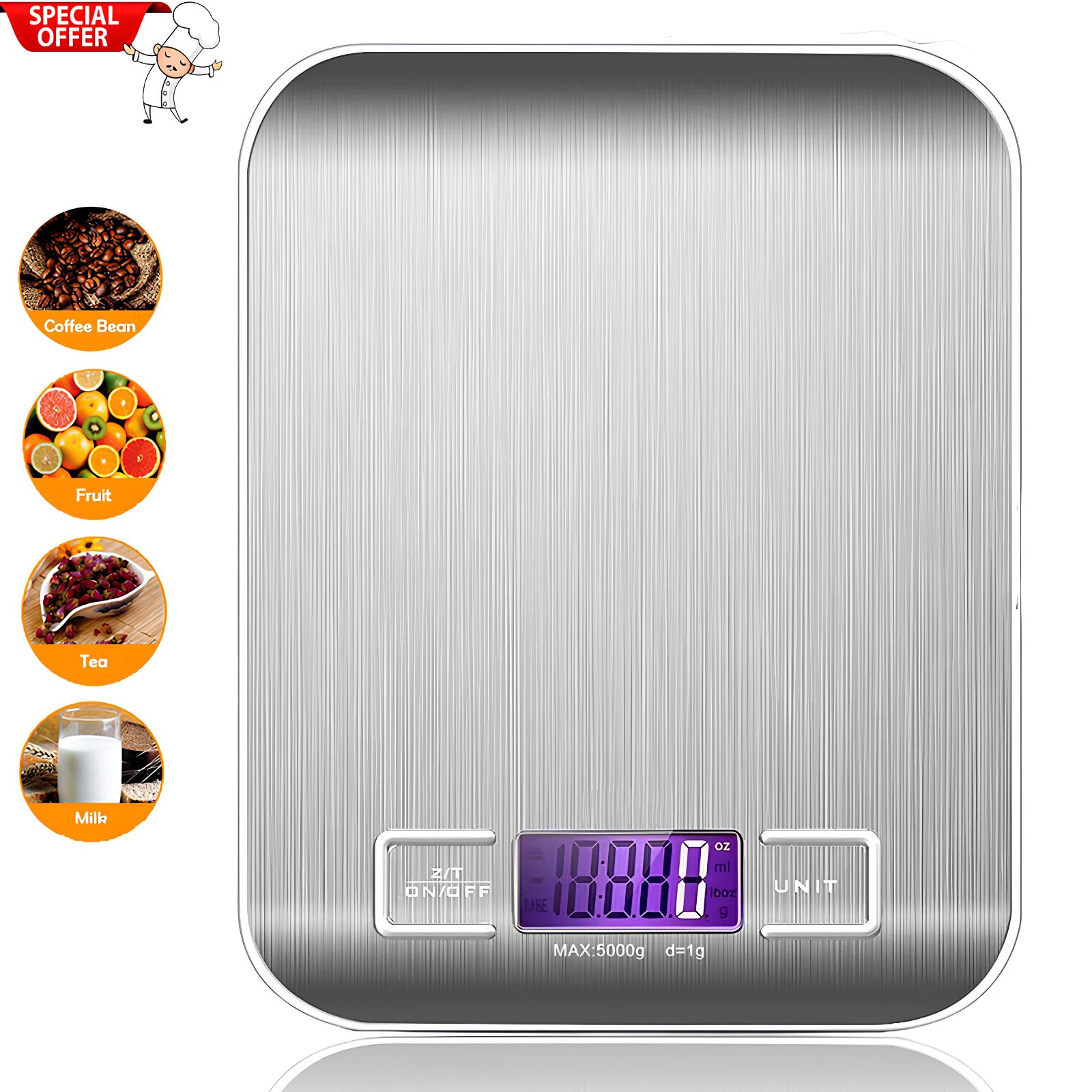 Digital Kitchen Scale LCD Display 5kg Weighing Food Scales Slim Stainless