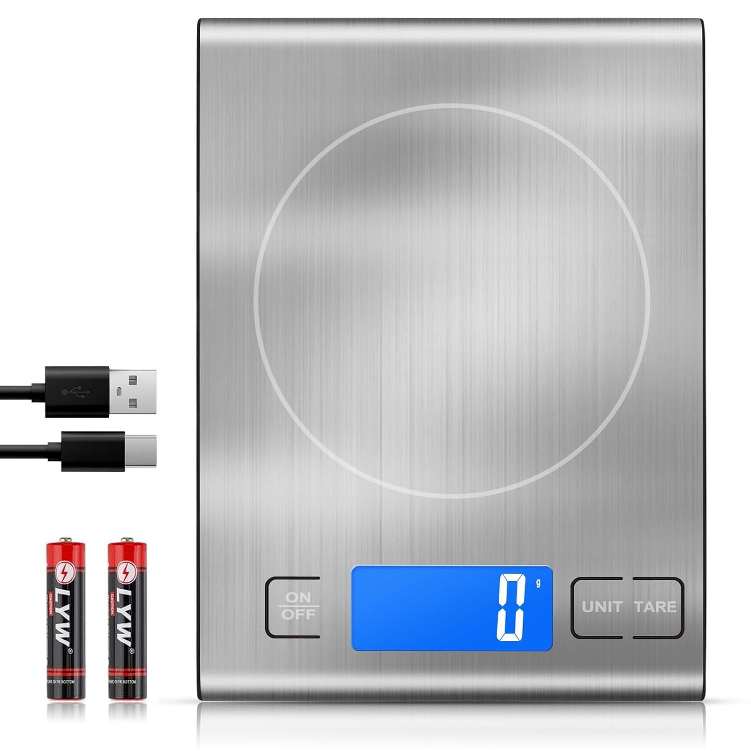 Diyife Rechargeable Digital Kitchen Scales, 1g/15kg 33lbs Food Weighing Scales with Large Backlit LCD Display (5 Units) Stainless Steel Electric Scales Multifunction for Baking Cooking