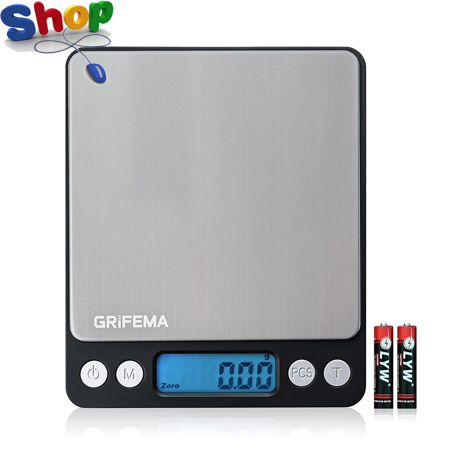 GRIFEMA GA2002 Digital Kitchen Scales Food Weighing Scales with LCD Display 1g5kg Weight Grams and Oz for Baking and Cooking Stainless steel Batt