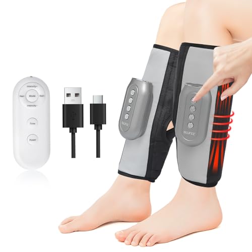 SUJFEE Leg Massagers for Pain and Circulation with Heat Cordless Electric Calf Massagers with Remote Control,5 Intensity Levels, 3 Massage Modes,15Min Auto-Off Air Compression Massager(Pair)