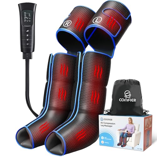 COMFIER Leg Massagers for Pain and Circulation, Whole Leg Massaging with Heat, Thigh Calf and Foot 3 in 1 Compression Boots, 3 Intensities 5 Modes, Birthday Gifts for Women, Men