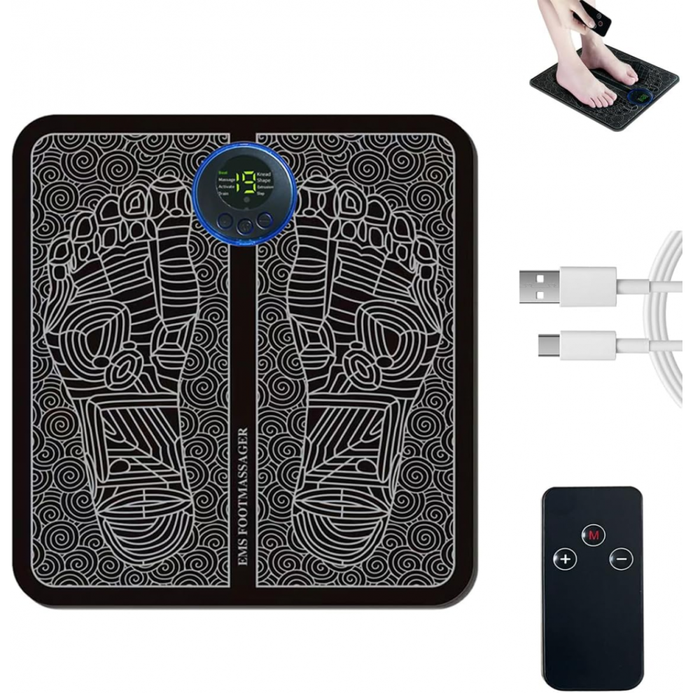 (Black) EMS Electric Foot Massager, Leg Reshaping Cushion, Foot Muscle Stimulation Mat, Stock - Sjue