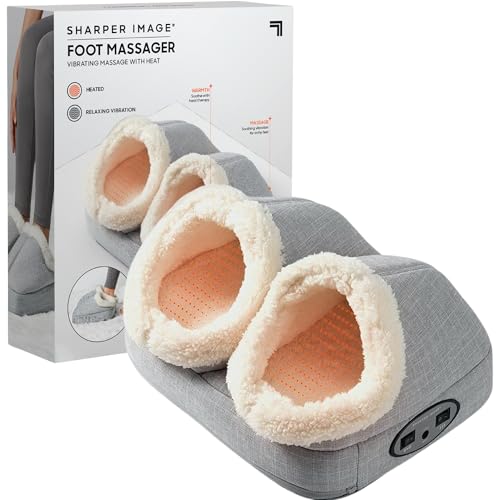Sharper Image Heated Foot Massager - Vibrating Foot Massager with Heat, Electric Feet Warmer for Achy & Sore Feet, Foot Massage Machine with Soft Fleece Lining for Women & Men, Heated Foot Warmers