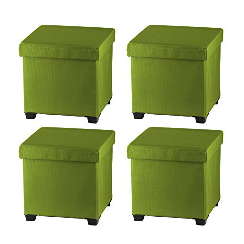 Multi-Purpose Folding Storage Ottoman Foot Rest Stool - LIME GREEN - 38cm (H) x 38cm (W) x 38cm (L) - Suitable for Indoor or Outdoor Use - (Set of 4)
