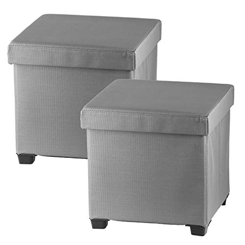 BRIAN & DANY Folding Storage Ottoman, Faux Leather Cube Foot Rest Stool with Cover, Storage Chest with Highly Elastic Sponge Filling, Gray, 38 x 38 x 38 cm