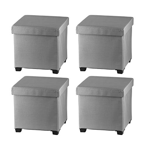 Multi-Purpose Folding Storage Ottoman Foot Rest Stool - LIGHT GREY - 38cm (H) x 38cm (W) x 38cm (L) - Suitable for Indoor or Outdoor Use - Max Load 150kg (Set of 4)
