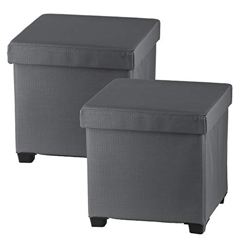 SONGMICS MAZIE Collection - Storage Ottoman Cube, 38 cm Folding Foot Rest Stool, Small Ottoman with Storage, Easy Assembly, for Living Room, Bedroom, Dorm, Dark Grey LSF82GYZ