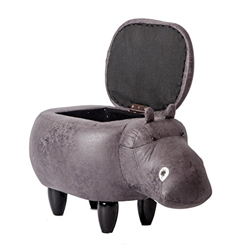 HM&DX Storage ottoman Footstool,Faux leather Upholstered Ride-on Hippo Animal feature Foot rest Seat with solid wood feet Entrance bench -Dark grey