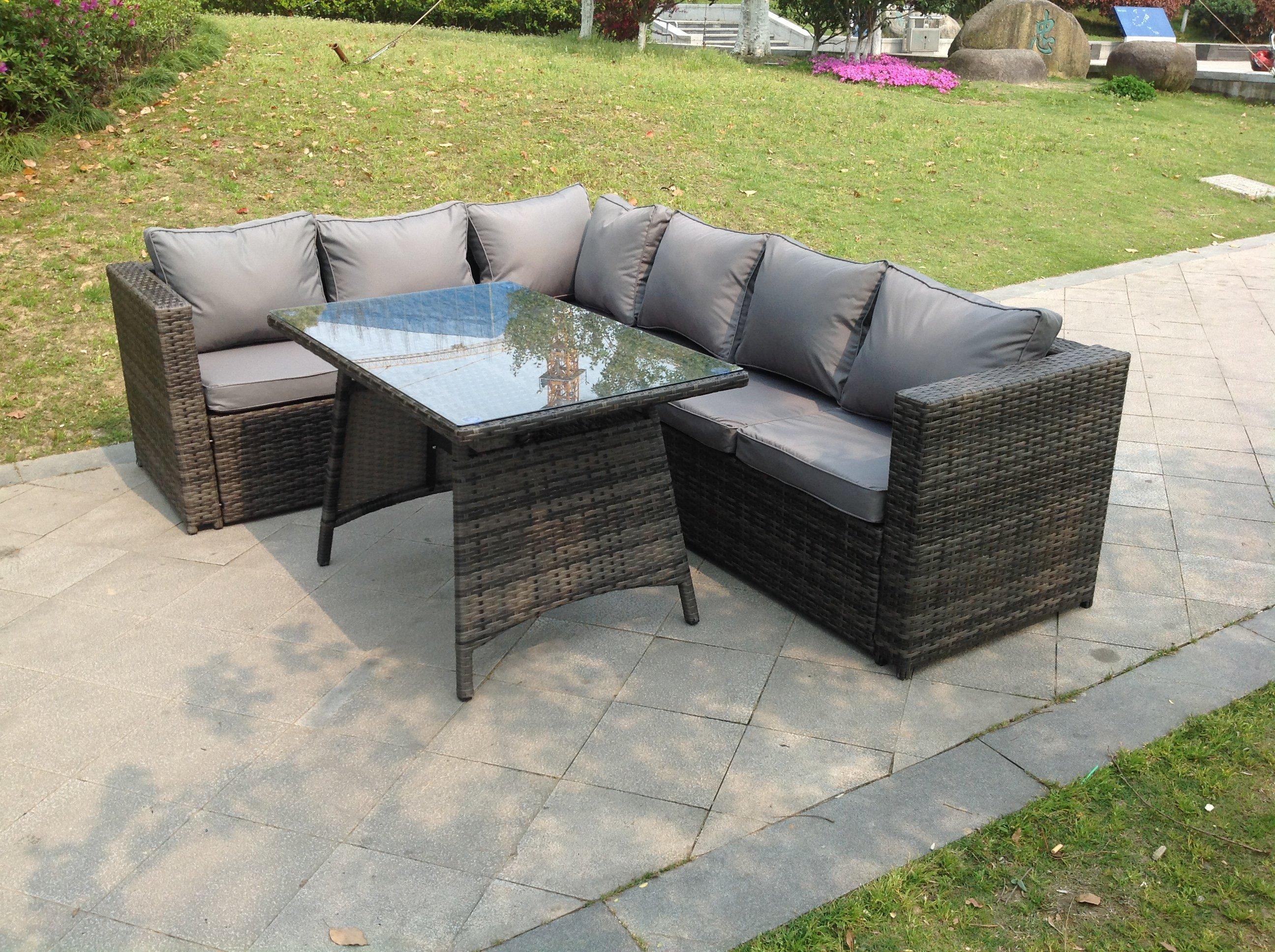 6 Seater Grey Rattan Corner Sofa Set Dining Table Foot Rest Garden Furniture Outdoor