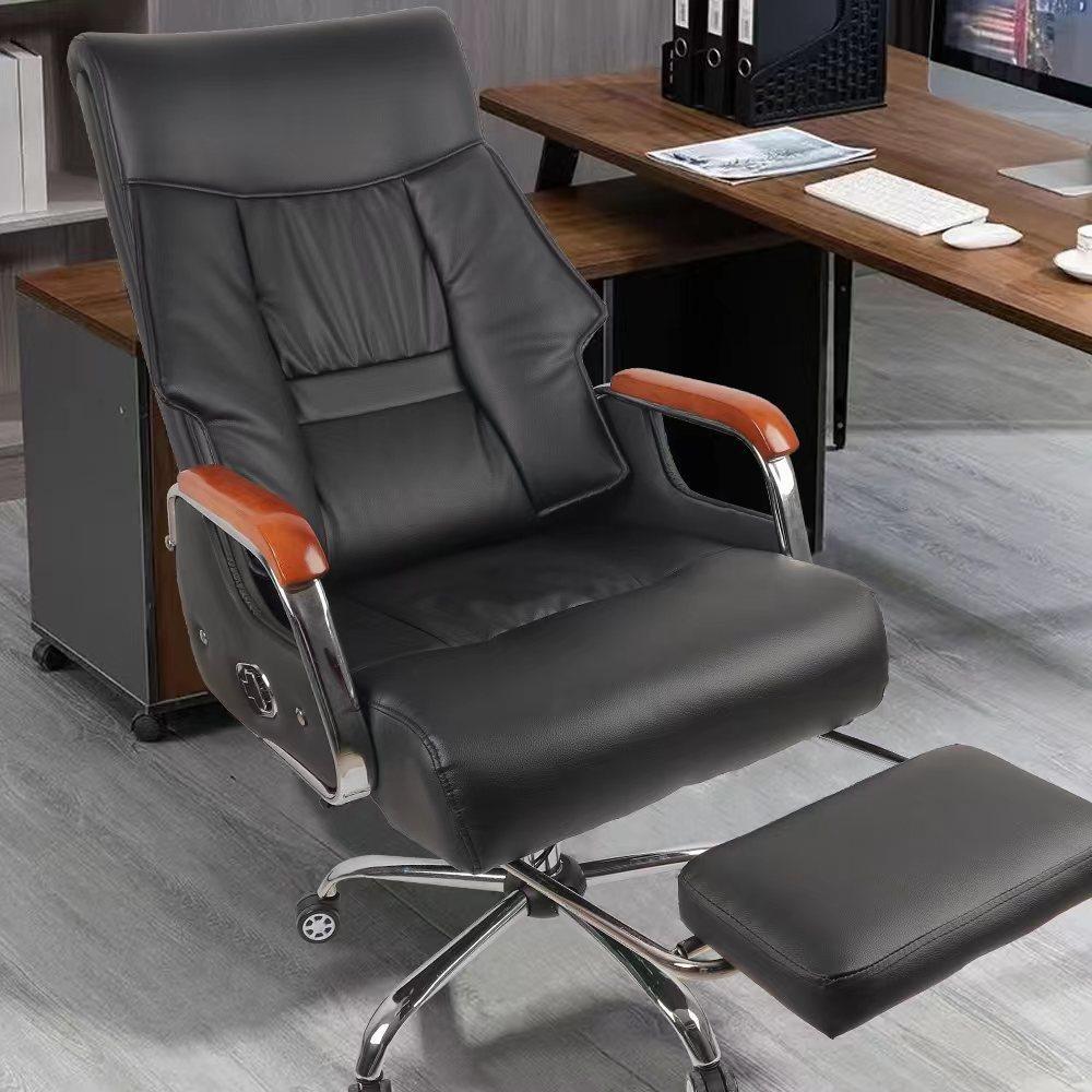 Executive Office Chair with Foot Rest and Wooden Arm Rest