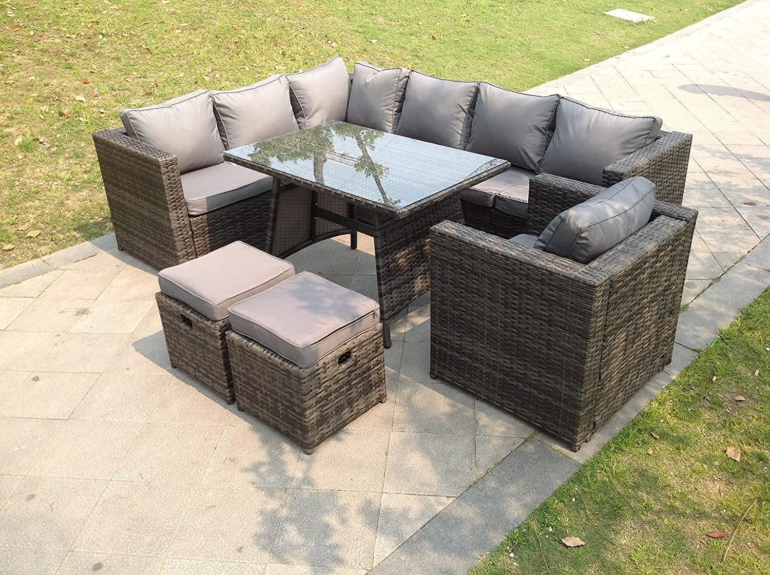 9 Seater Grey Rattan Corner Sofa Set Dining Table Chair Foot Rest Garden Furniture Outdoor