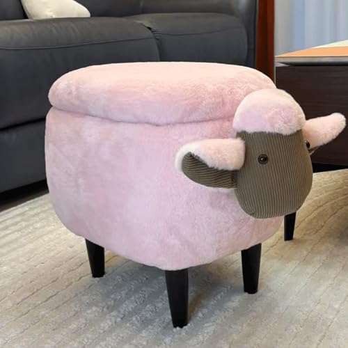 JixCJHj Footstool Foot Stool Creativity Lamb Footstool,Storage Box,with Lid Storage,for Living Room Bedroom Hallway Shoe Bench,Home Decor Stool,Comfortable Breathable Small Footrest(Pink)