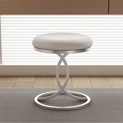 JixCJHj Vanity Stool Chair for Makeup Room,with Metal Legs, Modern Foot Ottoman for Bedroom, Living Room,Round Ottomans,for Vanity,Entryway, Hallways(Silver)