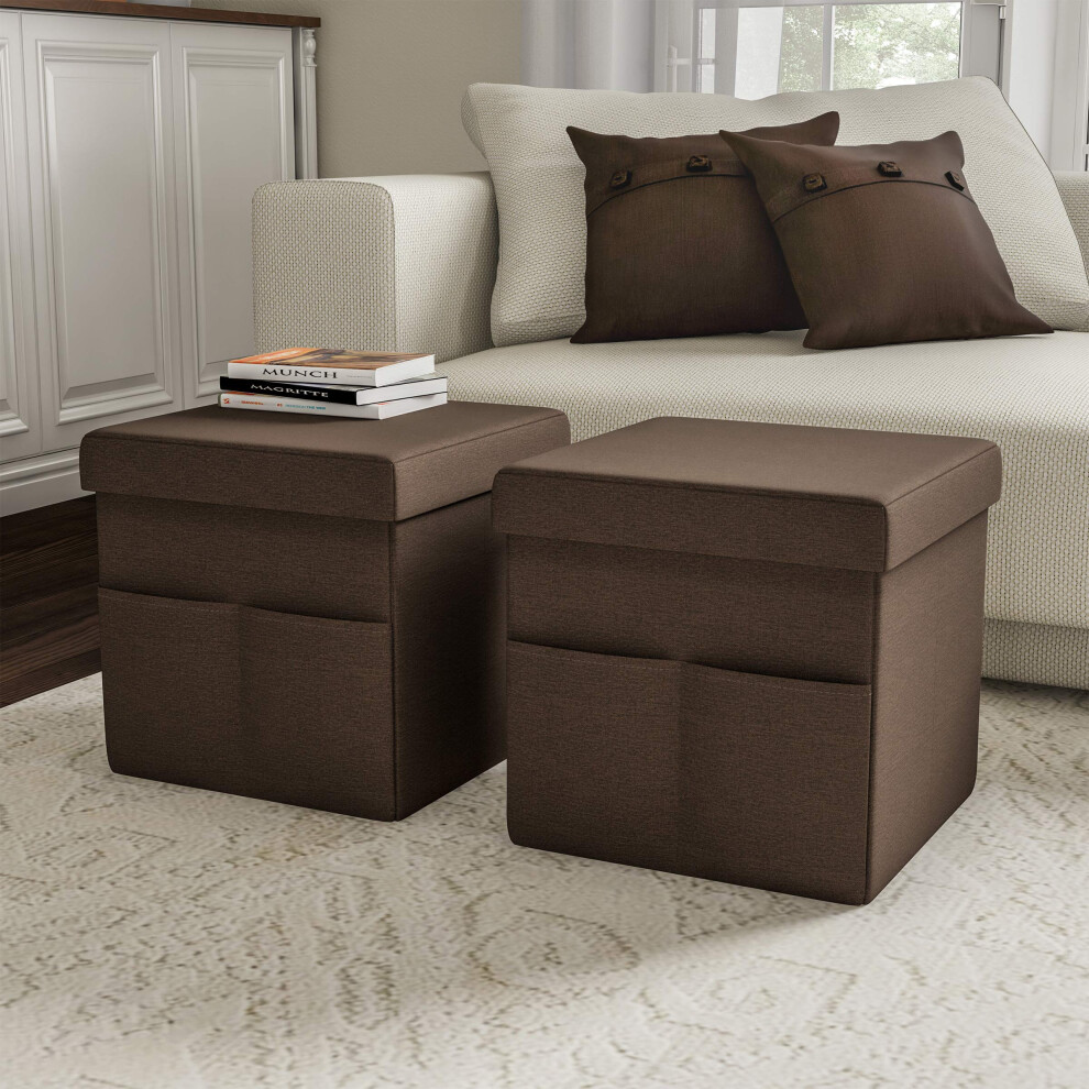 Set of 2 Ottomans with Storage Pockets 15Inch Folding Foot Rests or Storage Organizers for Bedroom Living Room or Dorm by L