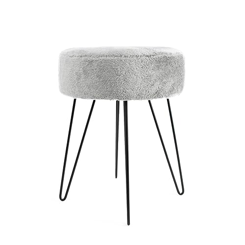 OHS Footstool Teddy Fleece, Dressing Table Stools for Bedroom Foot Rests for Living Room Hairpin Legs Makeup Vanity Stool Pouffe, Decorative Padded Fabric Grey