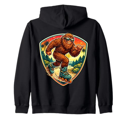Sasquatch Rollerblading Big-foot Shaka Roller Blade Lover Zip Hoodie