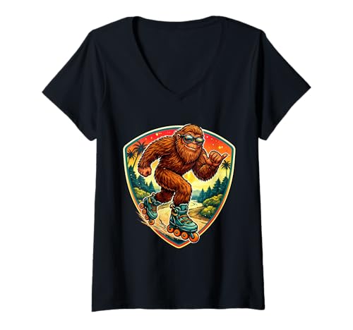 Women's Sasquatch Rollerblading Big-Foot Shaka Roller Blade Lover V-Neck T-Shirt