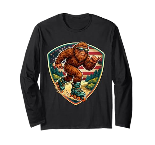 Sasquatch Rollerblading Big-Foot Shaka Roller Blade American Long Sleeve T-Shirt