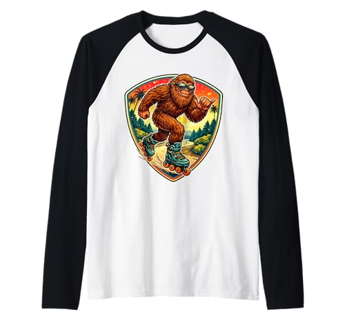 Sasquatch Rollerblading Big-Foot Shaka Roller Blade Lover Raglan Baseball Tee