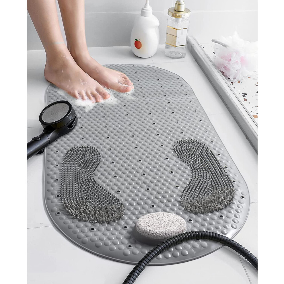 Yolife Shower mat Non Slip Bath Mat,40X80 CM Shower Foot Scrubber Mat with Removable Pumice Stone,TPE Shower Stall Mat Foot Cleaning Massage with