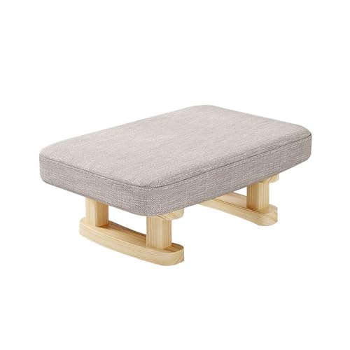 Aibiju Foot Stool, Ottoman Pouffe Stool, Low Stool Fabric Sofa Stool Cover 4 Beech Legs Suitable for Bedroom, Living Room and Kitchen, (Brown Leg + Grey cushion), YDEU-1355