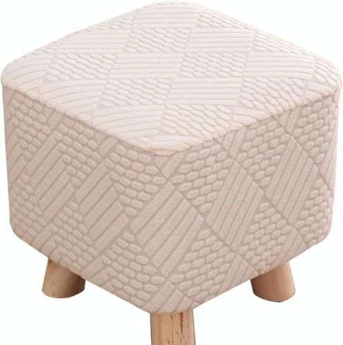 1/2/3/4pcs Stretch Square Ribbed Ottoman Slipcover Footstool Cover with Elastic Bottom Washable Foot Stool Protector for Pouffe & Cube Ottomans(Beige,1pc)