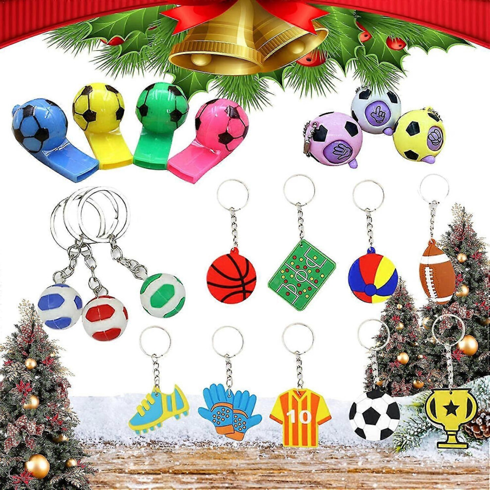 Christmas Football Advent Calendar,24 Days Countdown Christmas Calendar Football Toys Set | Christmas Party Favors with Keychain Wristband Toys