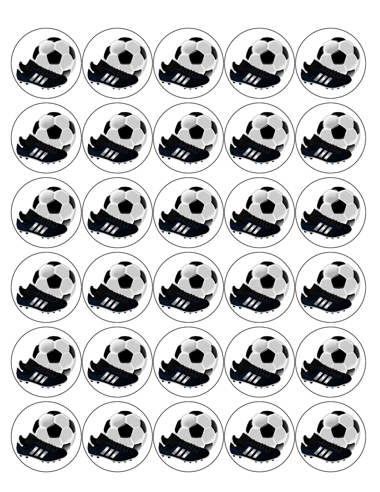 30 FOOTBALL AND BOOT 40mm PREMIUM EDIBLE RICE PAPER 4CM CUPCAKE CAKE TOPPERS D11